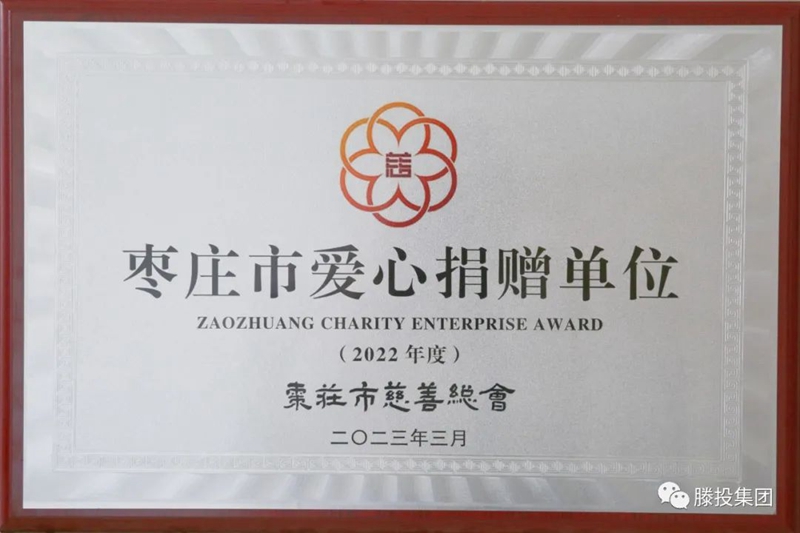 發揚慈善精神,弘揚傳統美德。山東滕建投資集團在“2022年度棗莊市慈善事業先進單位和先進個人系列獎項”中榮獲“棗莊市愛心捐贈單位”稱號。近年來,集團先后投身于捐資助學、救災濟困等慈善事業,此次榮譽的獲得,是棗莊市慈善總會對集團工作的肯定和褒獎。下一步,集團將一如既往關心支持和參與慈善事業,充分發揮先進典