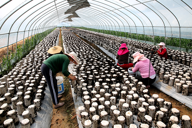 集團(tuán)副書記張明到東南田崗村調(diào)研指導(dǎo)食用菌木耳采收工作