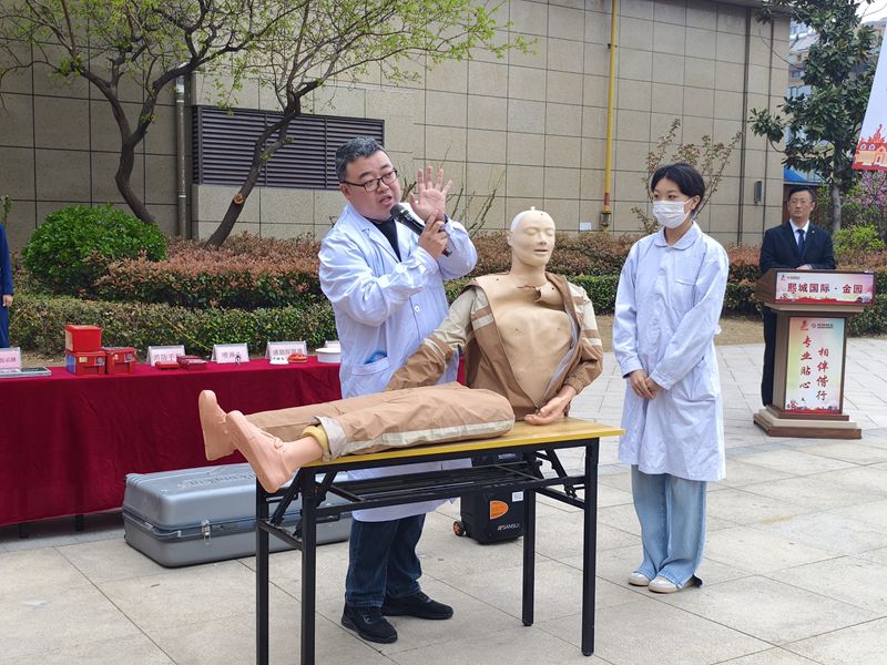 活動伊始,華澤消防維保單位人員進行消防器械介紹、日常火情滅火講解及火情發展趨勢及自我保護講解,滕州市財貿醫院醫護人員進行了急救知識講解,消防大隊的專業人員進行了滅火救援裝備器械操作演示及講解,讓大家更加直觀地了解消防安全知識和緊急救援知識。