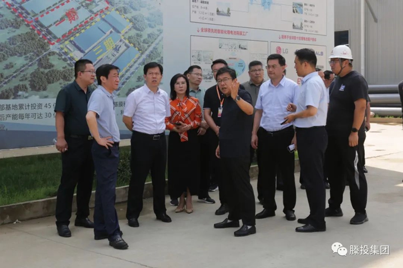 7月26日,滕州市委常委、市委辦公室主任顏丙磊一行來(lái)中材鋰膜三期項(xiàng)目現(xiàn)場(chǎng)觀摩調(diào)研,督導(dǎo)重點(diǎn)項(xiàng)目建設(shè)情況。滕投集團(tuán)董事長(zhǎng)方玉新,總經(jīng)理侯欽軍,副總經(jīng)理黃建民及相關(guān)負(fù)責(zé)同志陪同參加活動(dòng)。在項(xiàng)目現(xiàn)場(chǎng),顏丙磊一行實(shí)地察看了項(xiàng)目建設(shè)情況,詳細(xì)聽(tīng)取了相關(guān)工作匯報(bào),了解了中材鋰膜三期項(xiàng)目在工程進(jìn)展、廠區(qū)布局、施工工藝