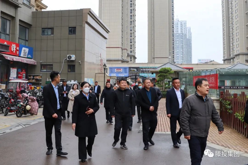 3月6日下午,滕州市市委常委、副市長趙煒,市住房和城鄉建設局黨組書記、局長馬培安,市規劃編制研究中心黨組書記、主任呂成釗,市直相關部門分管負責同志到滕投集團調研重點項目建設情況。滕投集團總經理侯欽軍、興滕公司董事長李建陪同調研。(侯欽軍在朱李居項目現場向趙煒匯報工程進展情況)趙煒一行先后實地調研北辛西