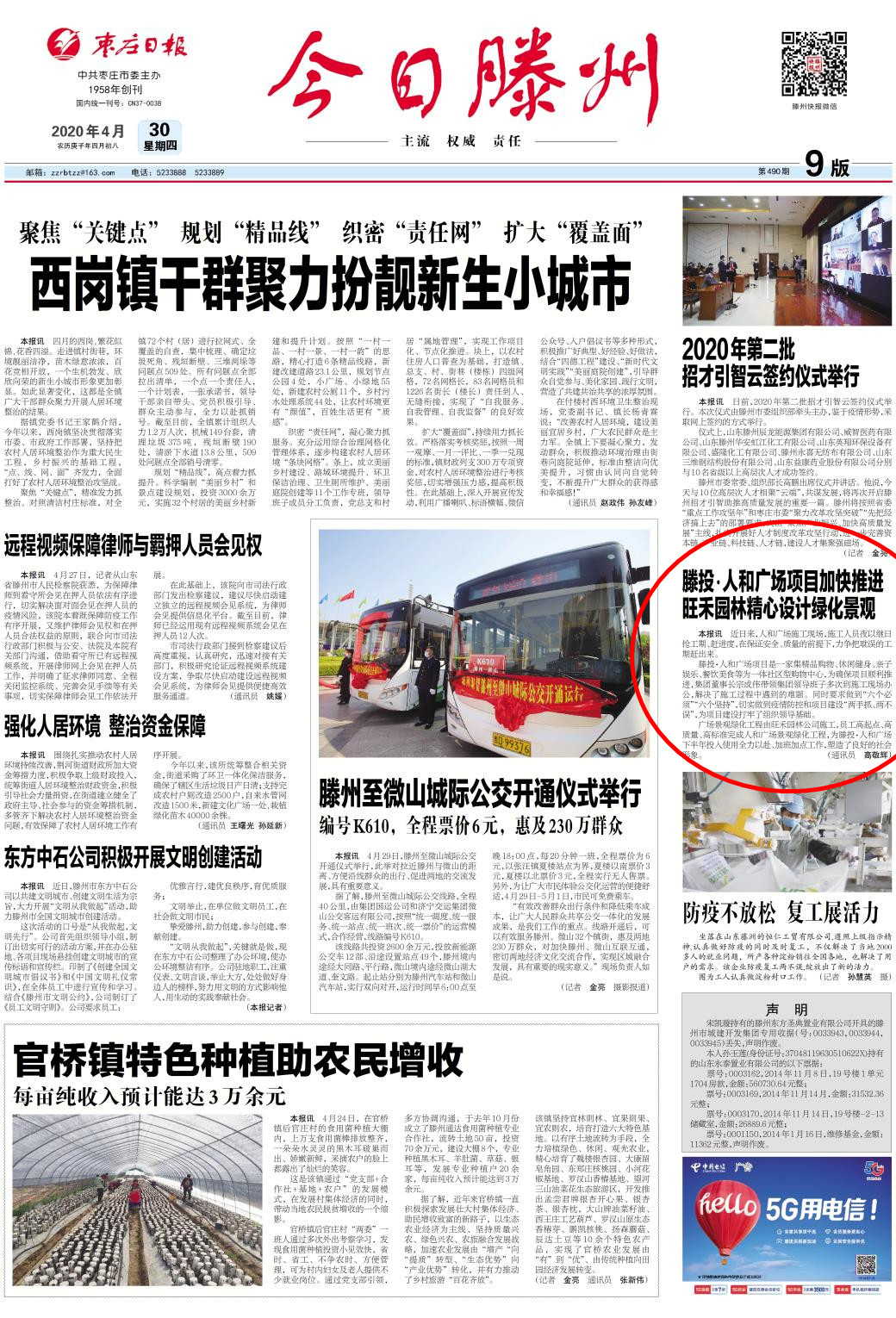 滕投·人和廣場項目加快推進 旺禾園林精心設計綠化景觀